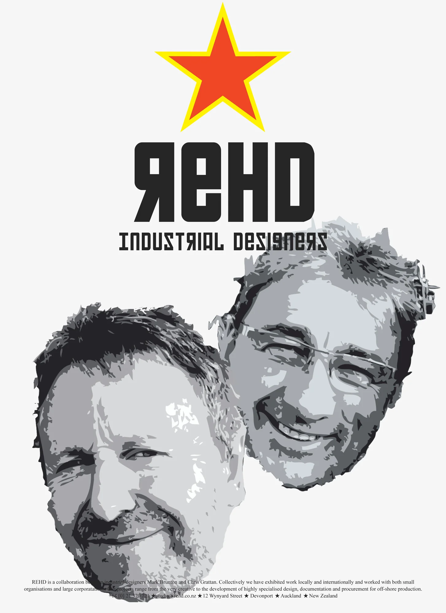 That's me on the left and my good friend Mark. We had a number of collaborative projects we were working on together under the REHD brand and it seemed like an opportunity to be a little creative with our identity. Mark had come up with the name earlier, the acronym of 'Research, Education, Humanities and Design'. My task was to work on the visual component. I started to think about the colour red, industry and hammers . . . it was all taking on a very Russian flavour and we were loving it.